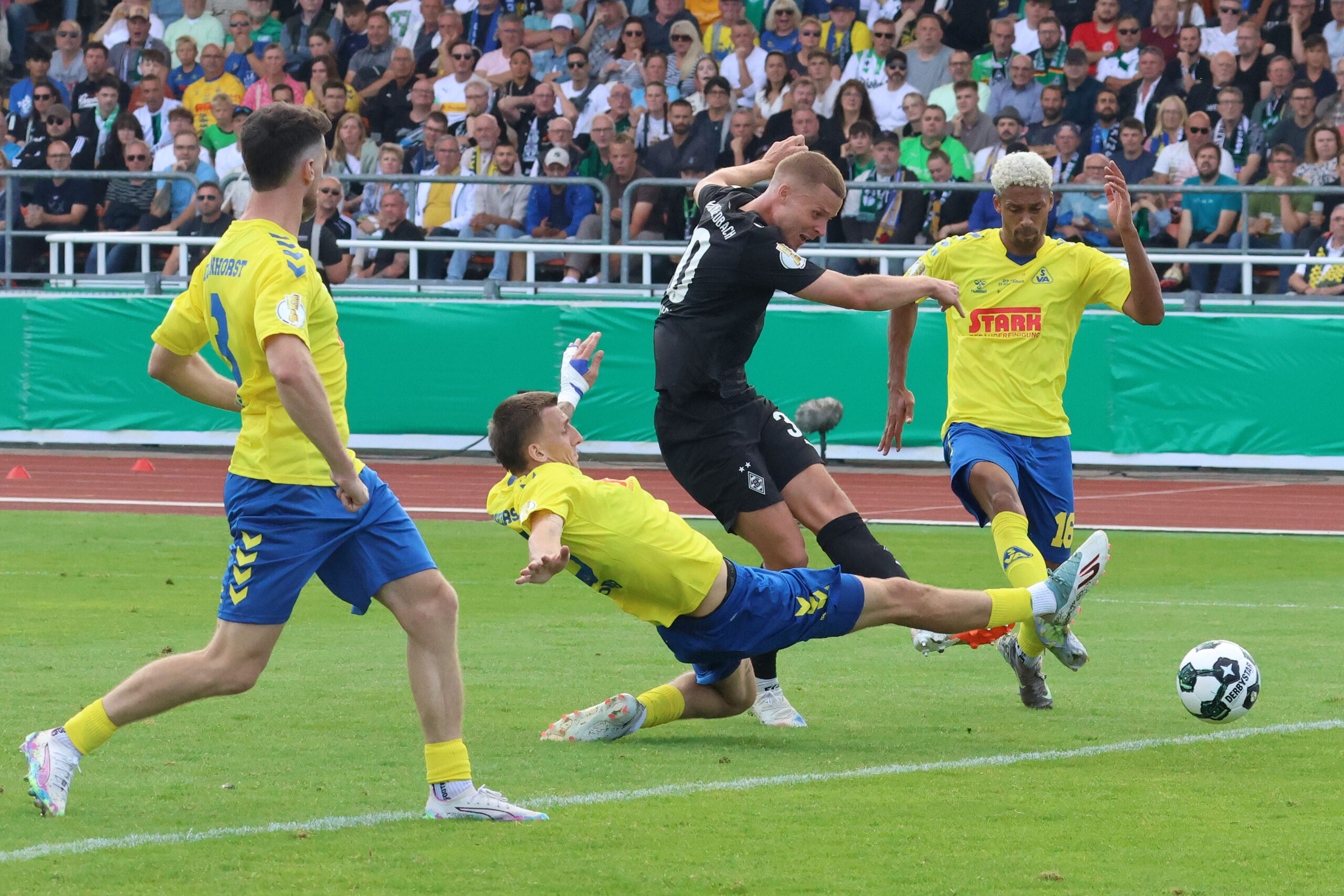 Nico Elvedi erlöste die Borussen beim SV Atlas Delmenhorst. Foto: Dirk Päffgen Das war ein hartes Stück Arbeit für Borussia: Die Fohlen zitterten sich am