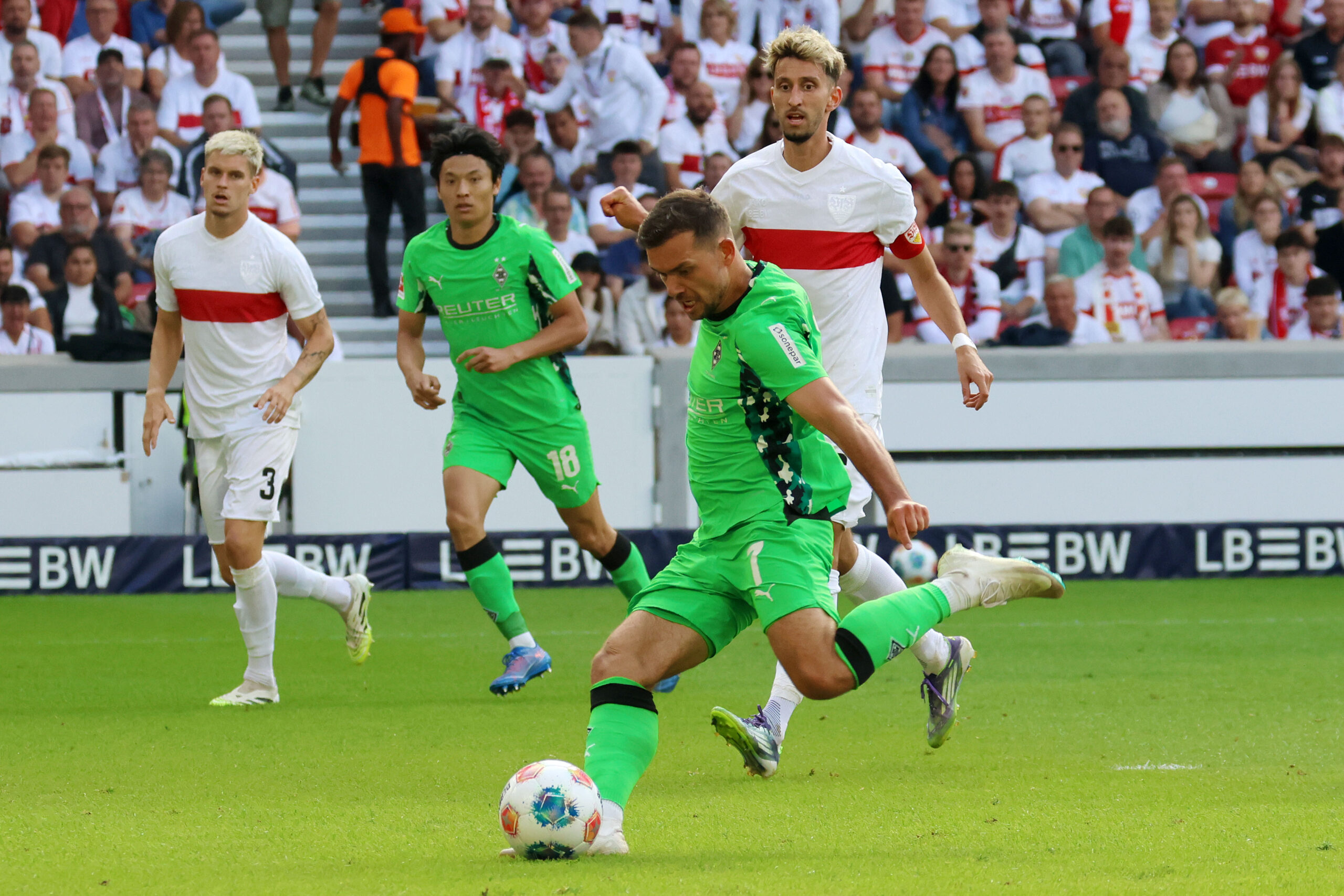 Kevin Stöger hatte die wohl größte Chance für die Fohlenelf. Foto: Dirk Päffgen Borussia verlor die Partie in Stuttgart mit 0:1, obwohl die Fohlen beste